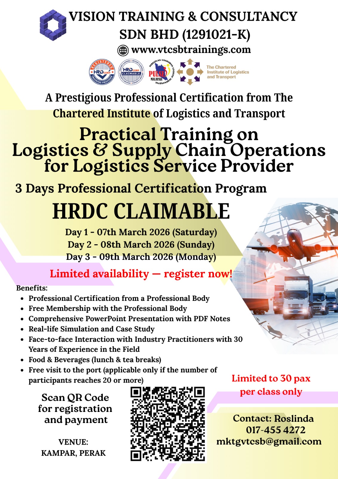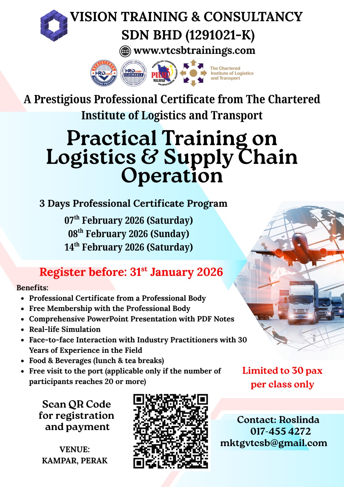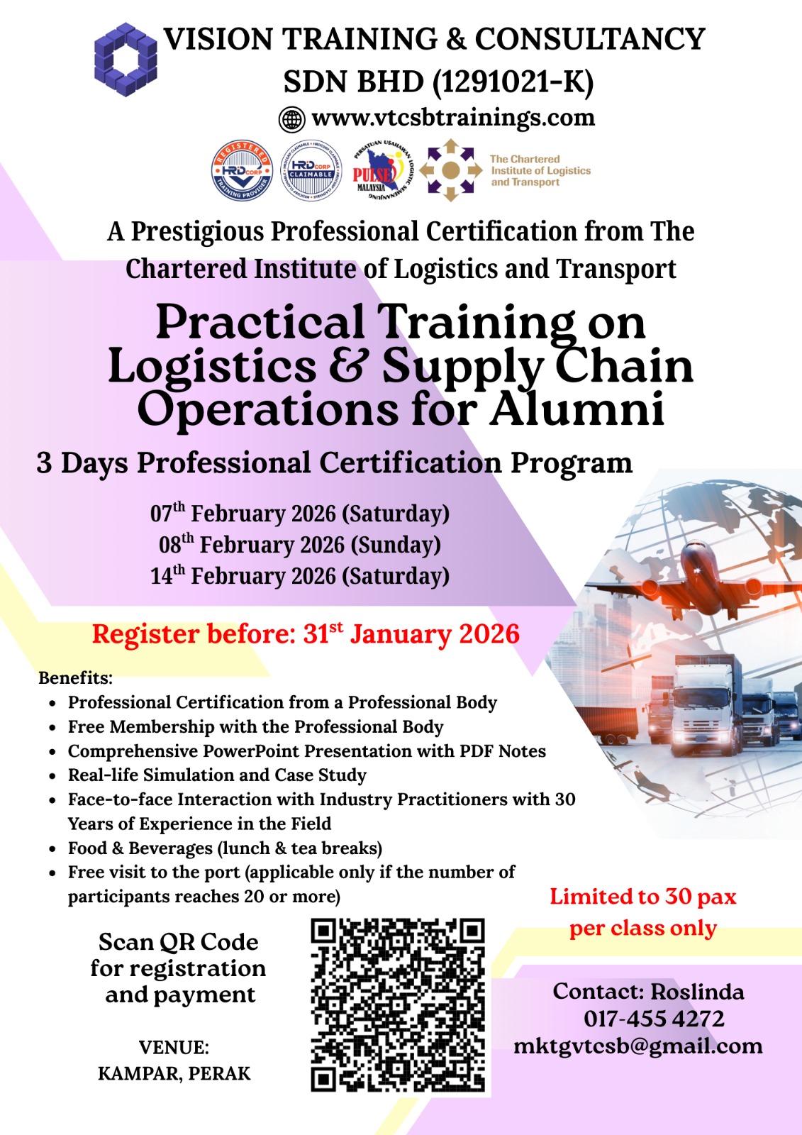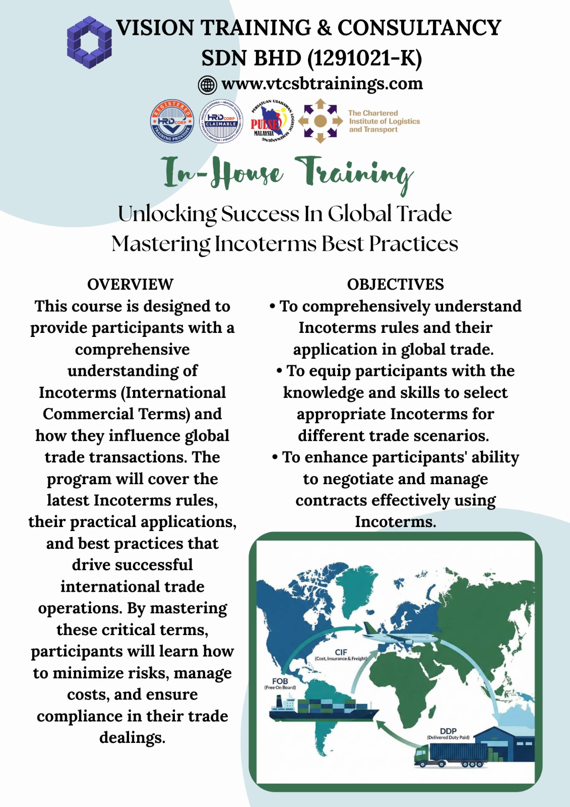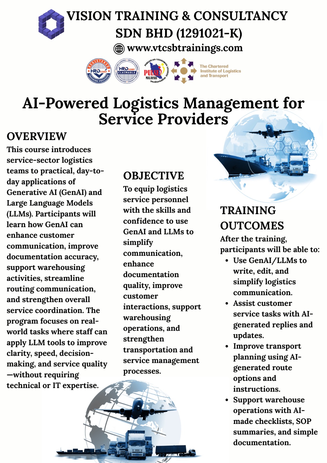 A Member of TPAM (Training Providers Association of Malaysia), Corporate Affiliate Member of CILTM (The Chartered Institute of Logistics & Transport Malaysia) & Exclusive Member of PULSE (Persatuan Usahawan Logistik Semenanjung Malaysia)