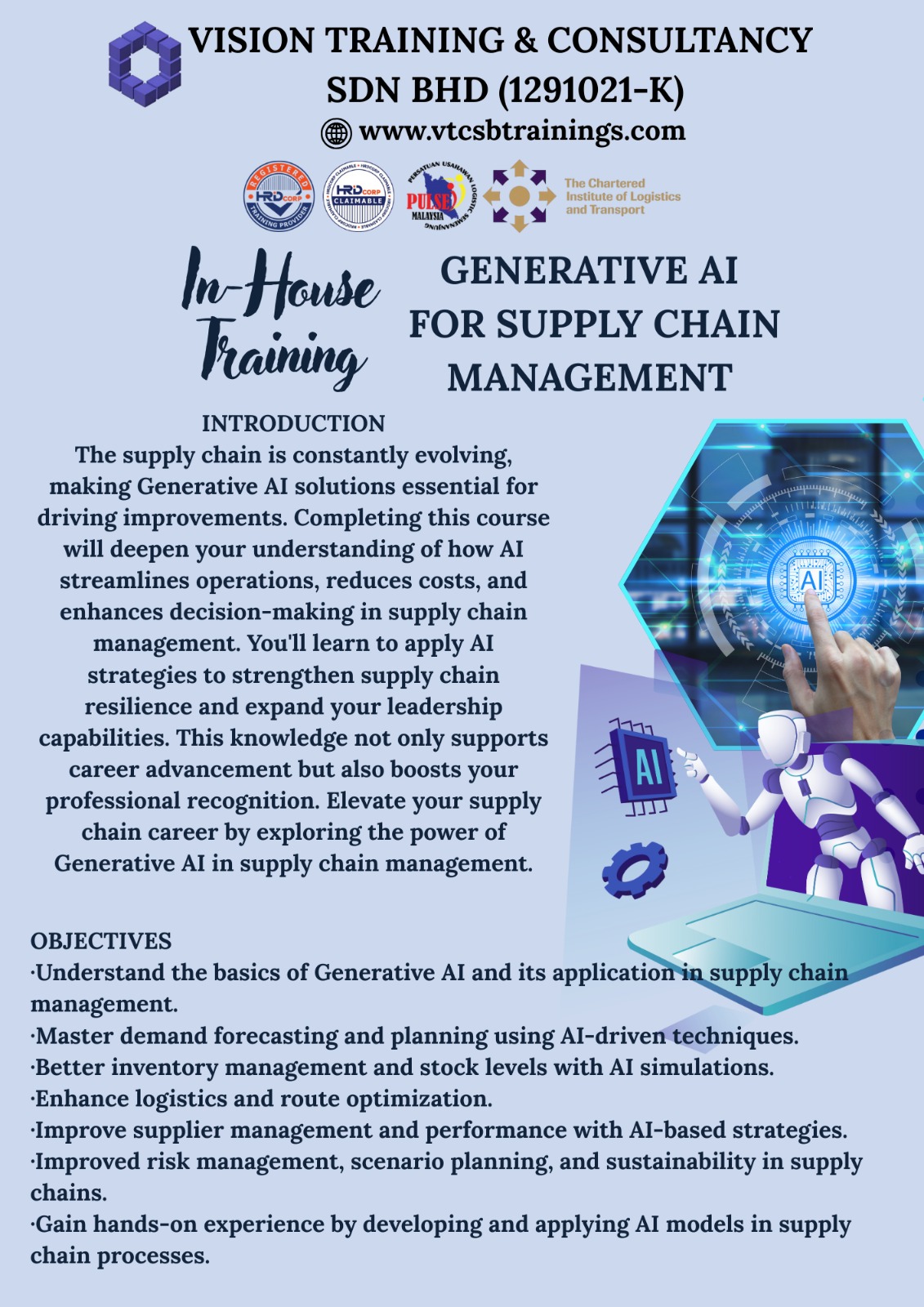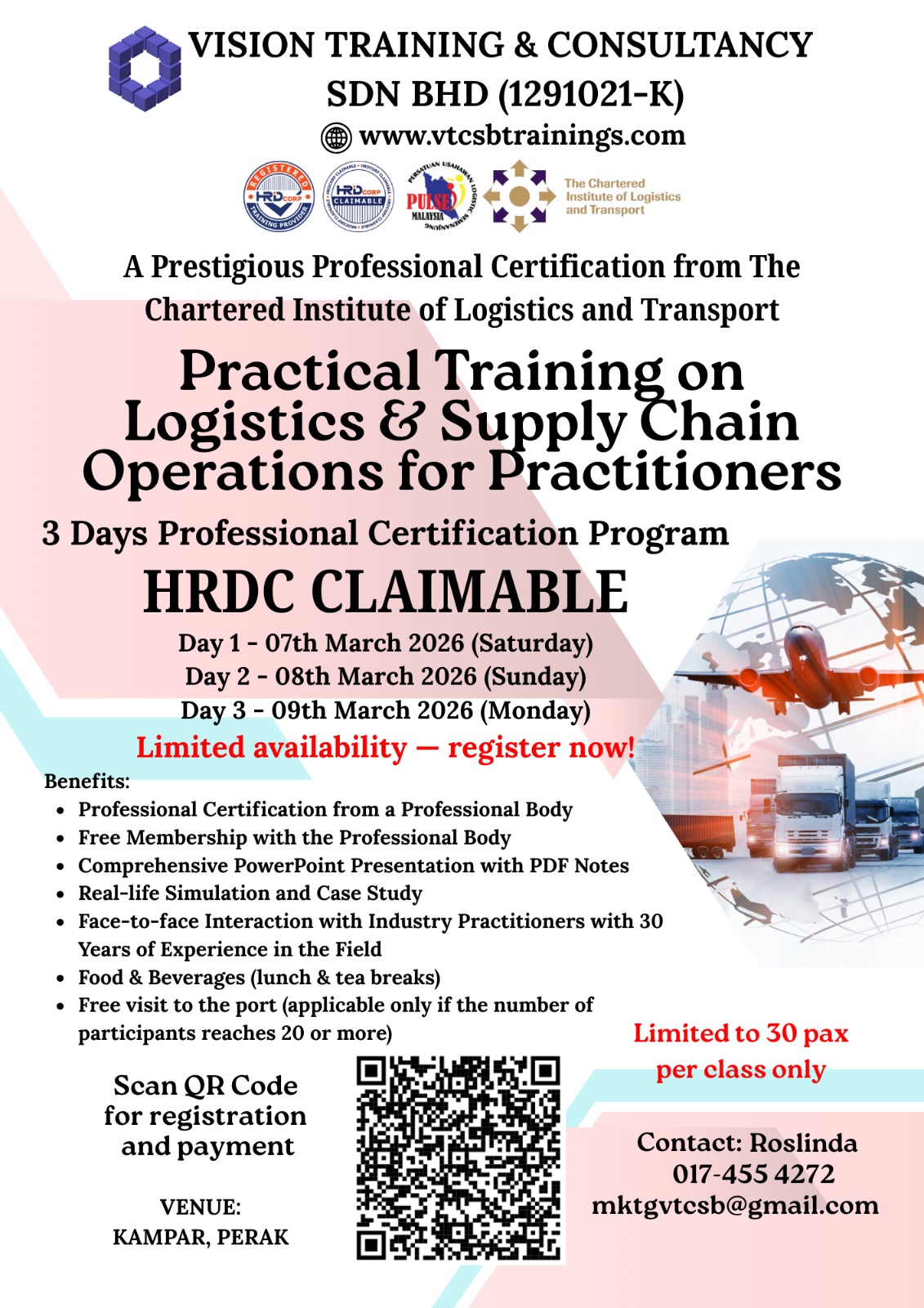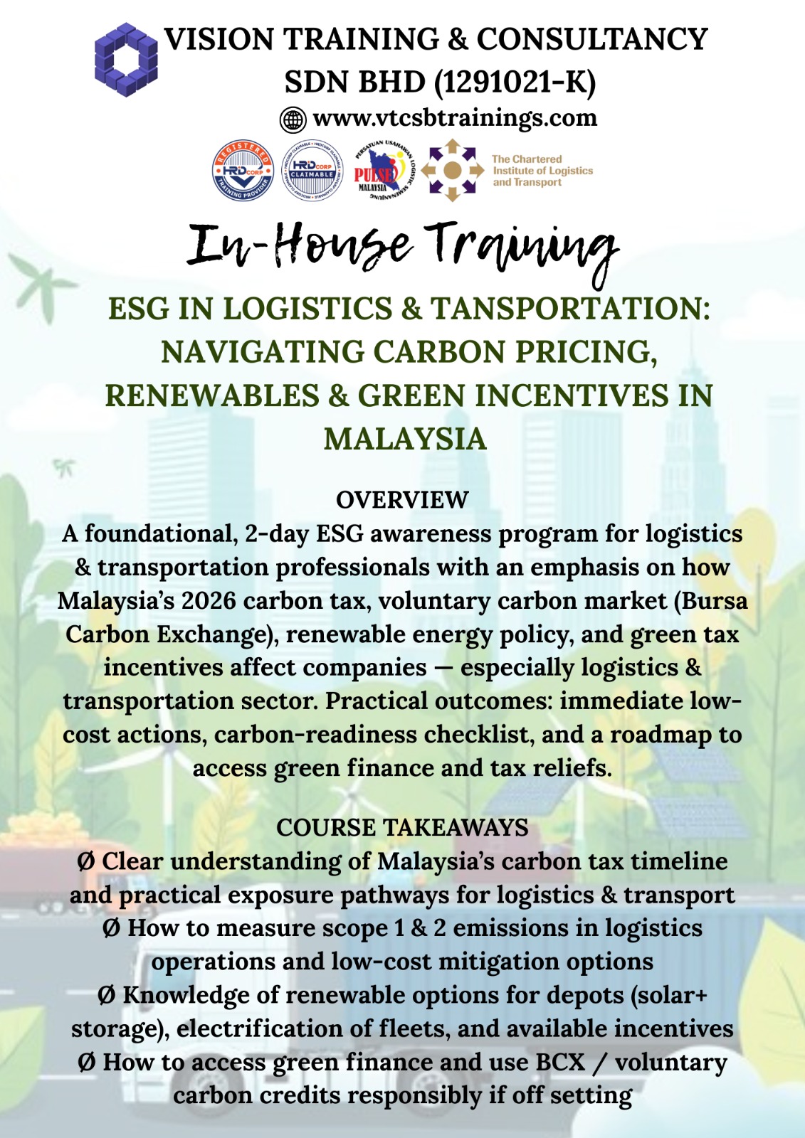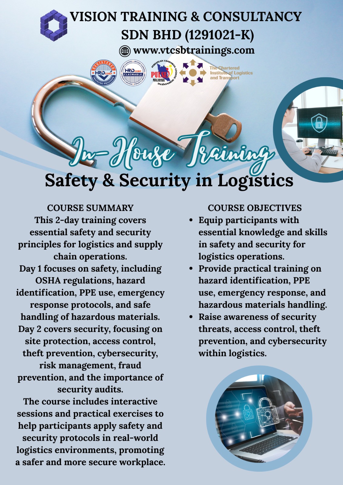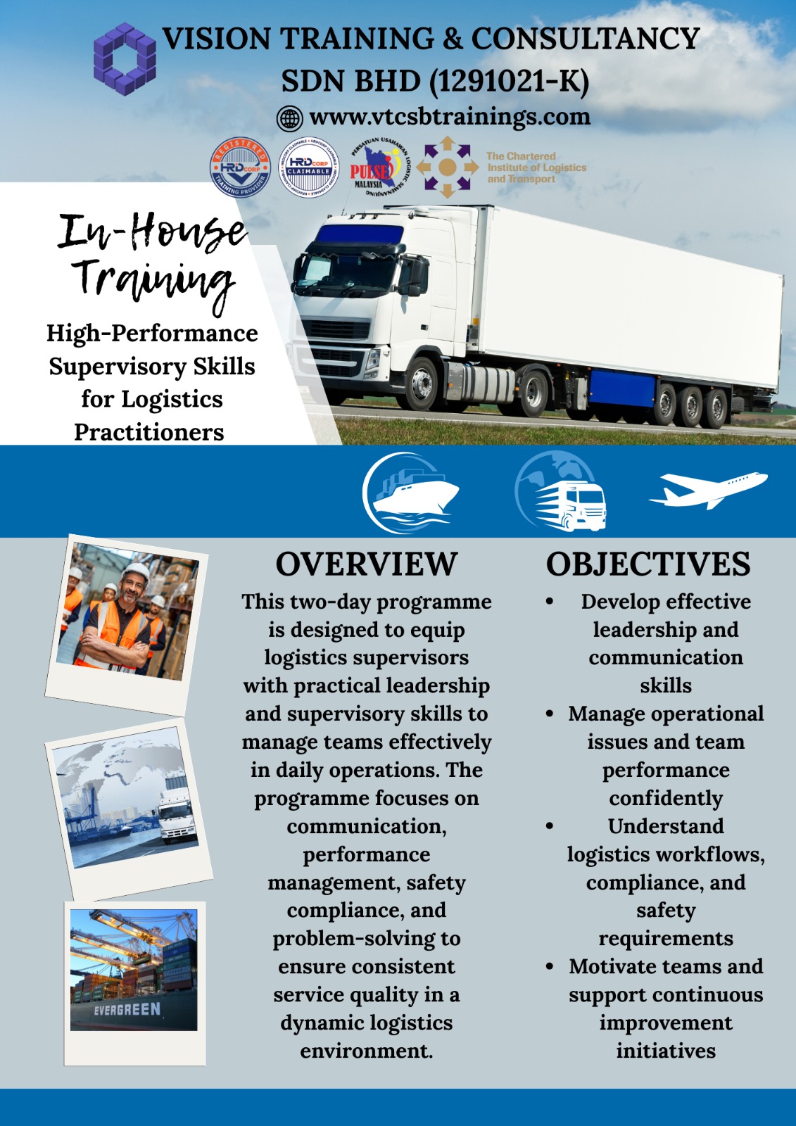 A Member of TPAM (Training Providers Association of Malaysia), Corporate Affiliate Member of CILTM (The Chartered Institute of Logistics & Transport Malaysia) & Exclusive Member of PULSE (Persatuan Usahawan Logistik Semenanjung Malaysia)